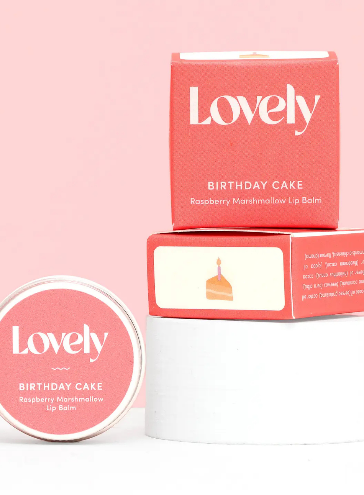 Lip Balm Birthday Cake in Raspberry Marshmallow from Lovely Skincare