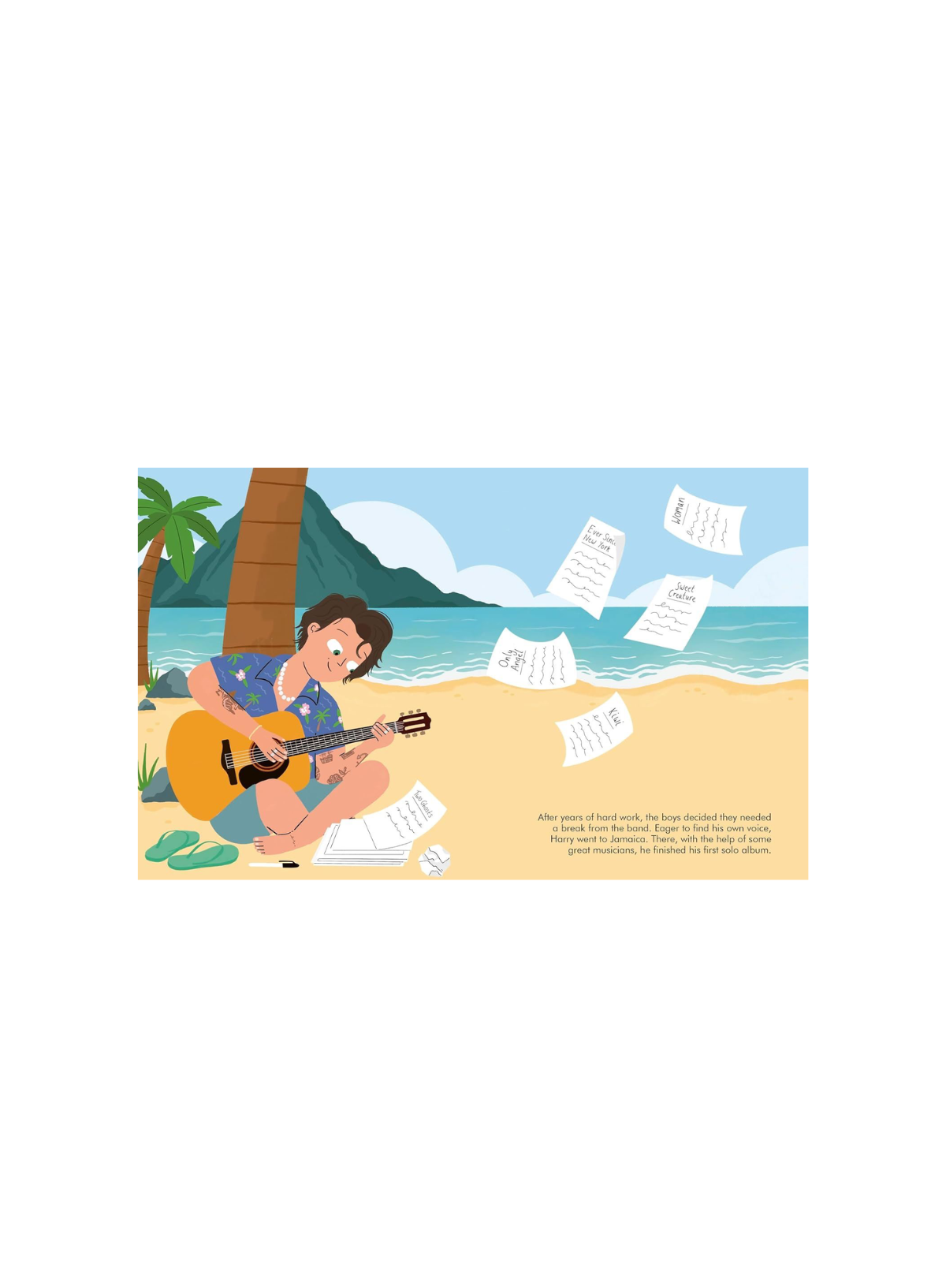 From a young age, little Harry loved singing and performing, and he sparked joy in the hearts of his audience. Today, his albums have reached the top of the charts and he has won award after award. Through his heartfelt lyrics, daring fashion and adventurous spirit, Harry sends a message of love and kindness, and he encourages his fans to do what makes them happy. This book features quirky illustrations and?extra facts at the back, including a biographical timeline with historical photos and a detailed profile.
