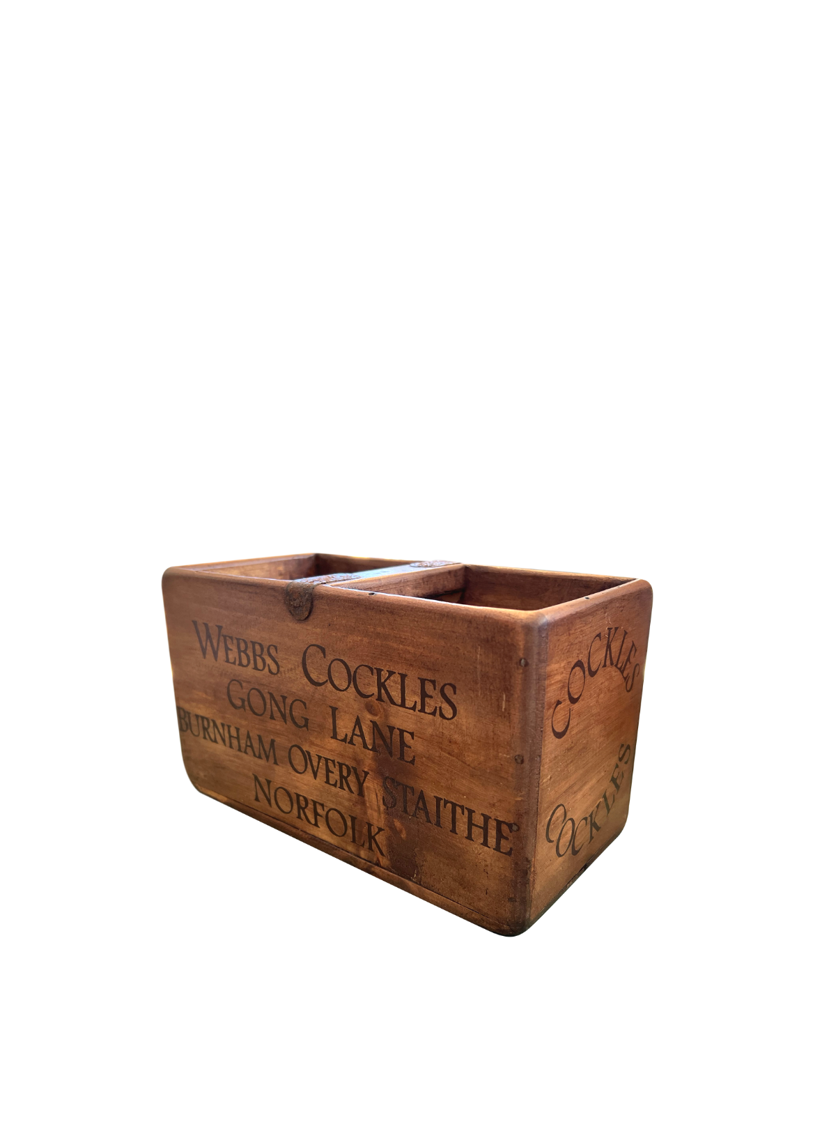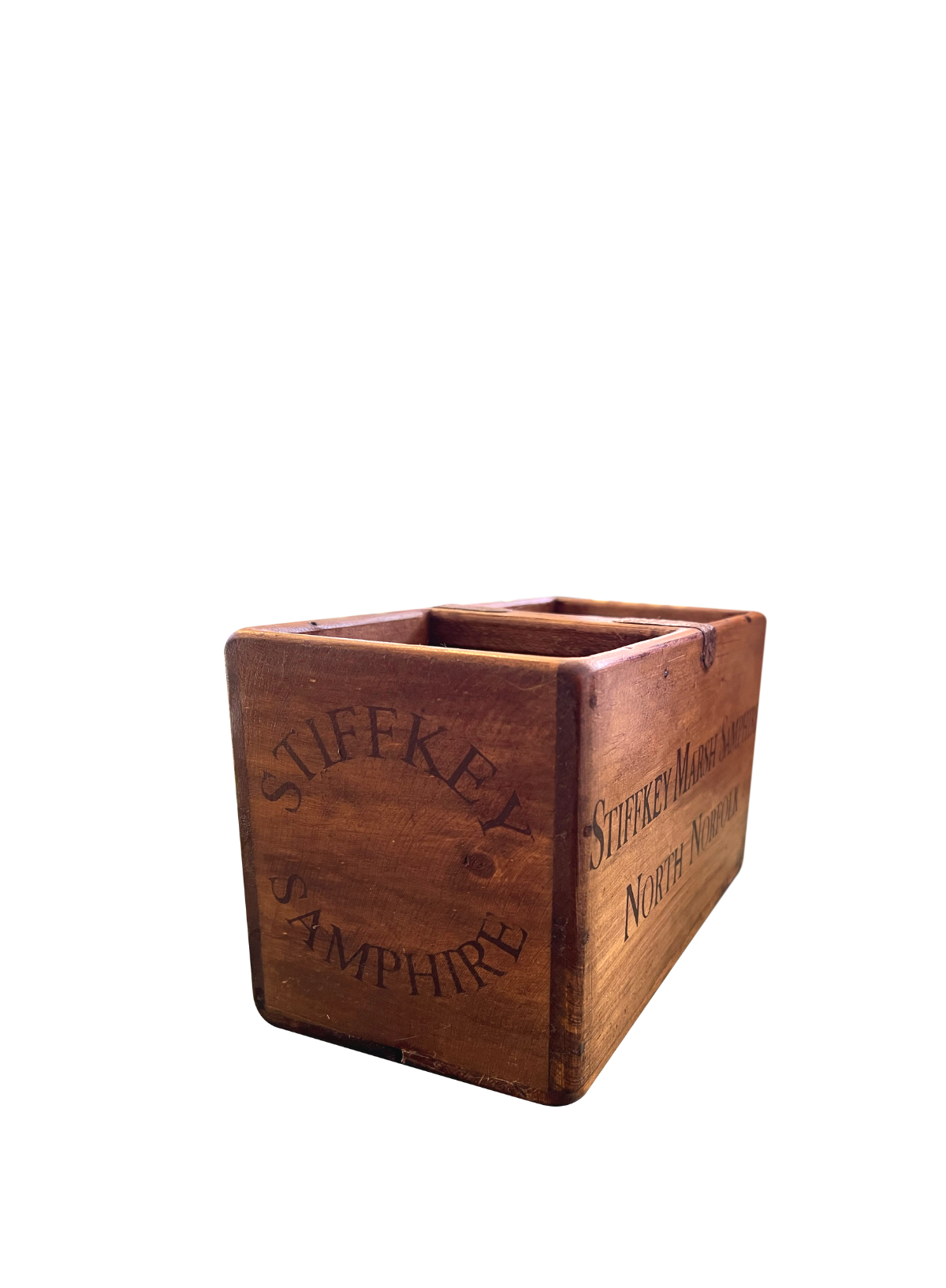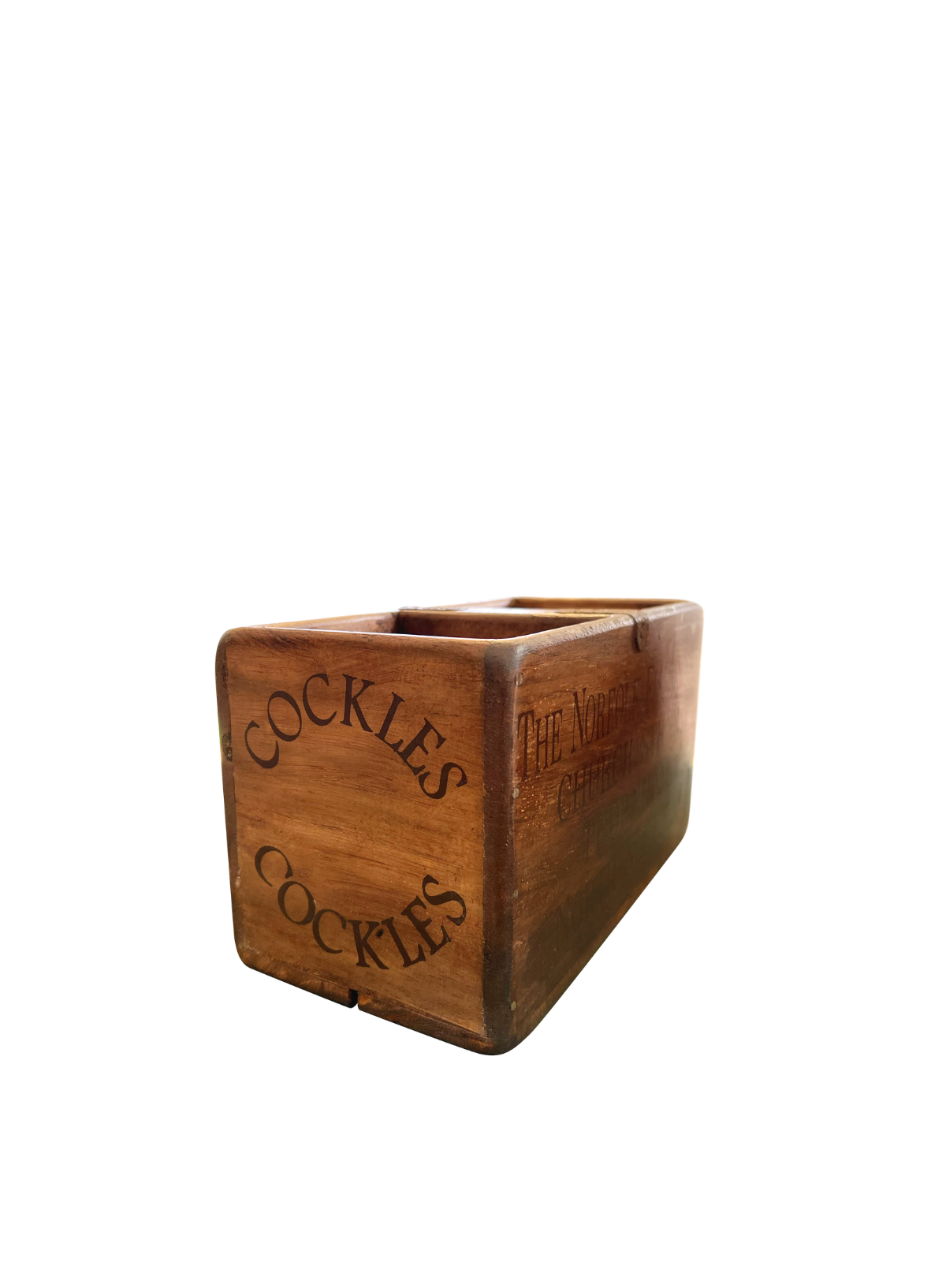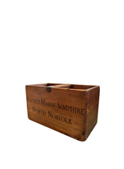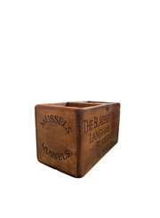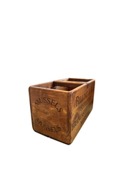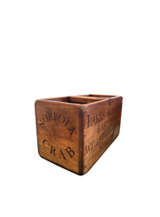 This medium-sized fish box is made from rustic wood and features a middle handle and two compartments