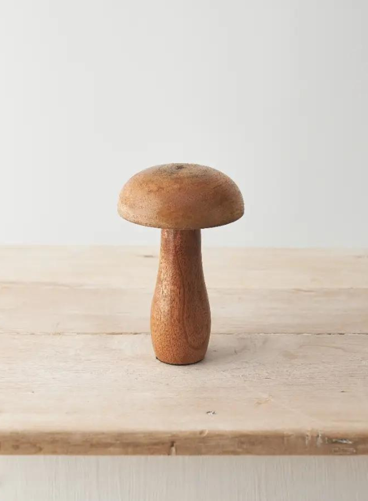 A chic mushroom ornament crafted from natural mango wood.