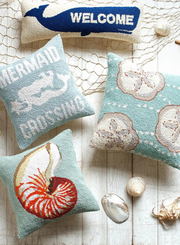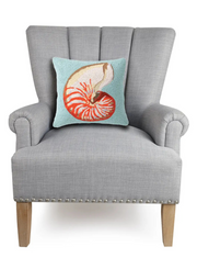 Add a splash of ocean-inspired elegance to your home with this 16" square pillow, featuring a stunning nautilus design.