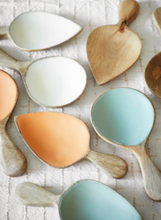 This Off White Wooden Serving Set from Madam Stoltz features a natural wood finish with a modern off white color. Perfect for any meal, it adds a rustic yet stylish touch to your table.
