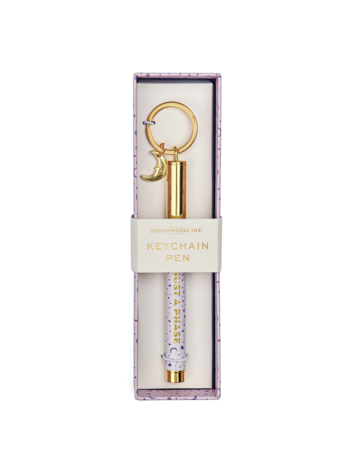 Your on-the-go scribe that turns every moment into a canvas for your thoughts. Compact, convenient, and cleverly designed, this miniature marvel ensures you're always ready to write whenever inspiration strikes. Catalog copy: Introducing our new keychain pens! These compact and cleverly designed ink pens are latched onto a gold coloured key ring, making them your on-the-go scribe for when inspiration strikes. Each patterned pen design has a gold metallic sentiment and an added gold charm.
