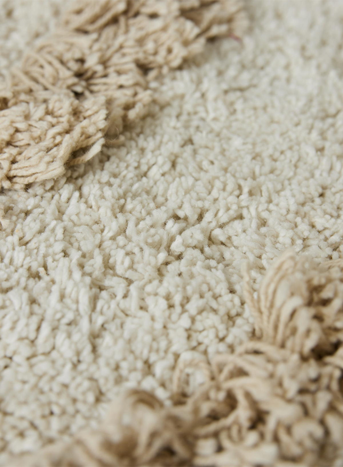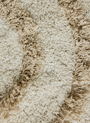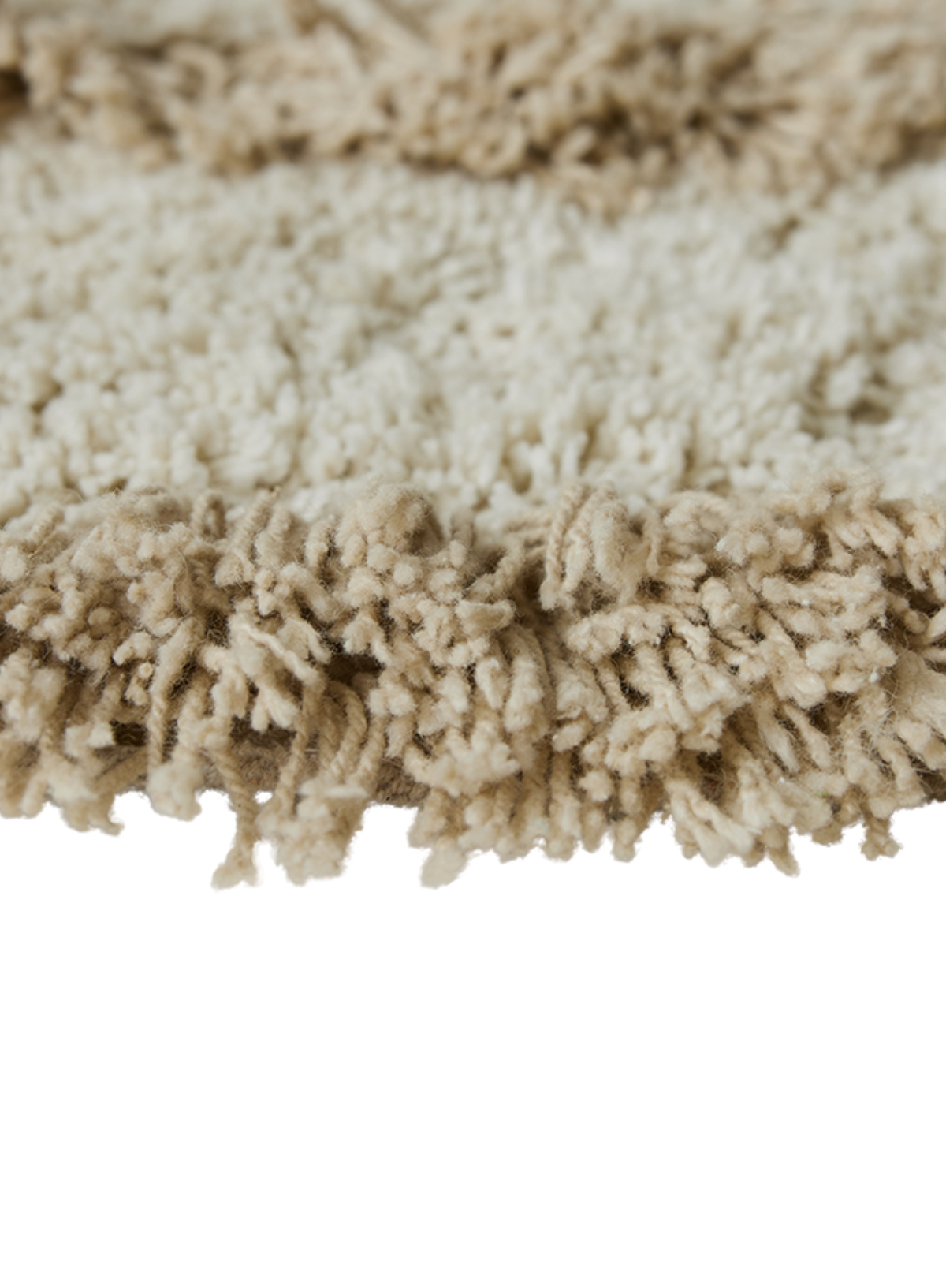 A round bath mat is always a good choice. It gives the room a calming effect and your feet a wonderfully soft surface when you visit the bathroom. The playful round upright pattern contrasts beautifully with the low, soft mat.